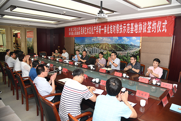 为有力推进“双百工程”工作的深入实施,6月14日-15日,在校党委书记刘江南、副书记赵小峰带领下,党委组织部部长孙晓宁、新媒体艺术学院院长马冬、工程训练中心主任王崇楼、扶贫工作办公室主任赵振华、新媒体艺术学院副教授邵璐及相关人员一行11人赴延长县开展“双百工程”结对帮扶工作。15日上午8时,延长县副县长王敏茹主持举行了校县民间艺术文化产学研一体化结对帮扶示范基地建设座谈会暨协议签约仪式。延长县委书记蔺治斌...