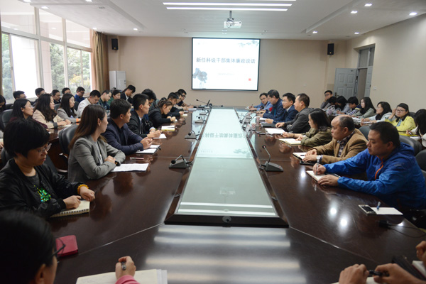 9月19日下午,永利官网在临潼校区教学楼A座会议室对近期新任的程程、王志刚等58名科级干部进行了集体廉政谈话。校纪委书记井浩,党委组织部部长孙晓宁和新任科级干部参加谈话会。会议由校纪委副书记、监察处处长冯林主持。