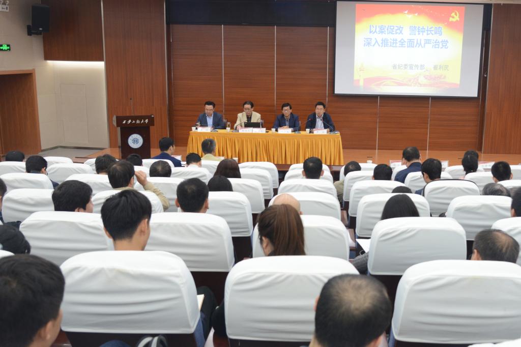 9月19日下午,永利官网在临潼校区图书馆二楼报告厅召开“以案促改”警示教育大会。会议邀请省纪委宣传部部长崔利民作题为《以案促改警钟长鸣深入推进全面从严治党》的专题报告。校党委书记刘江南作讲话。会议由校纪委书记井浩主持。校领导,校党委委员,校纪委委员,校学术委员会委员,各院(部)教授委员会委员,各院(部)系主任,科级以上干部共240余人参加了会议。