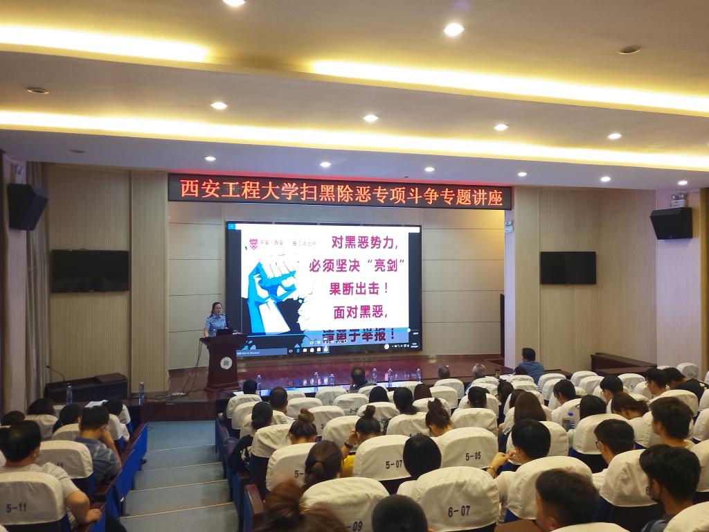 为了积极响应上级党委政府扫黑除恶专项斗争活动,进一步深化法制教育,增强师生自我安全防范意识,6月4日下午和6月6日上午保卫处邀请西安市公安局碑林分局经文保大队吕欣、金花路派出所张燕,分别在金花校区、临潼校区举办题为《开展扫黑除恶专项斗争创造安全稳定校园环境》专题讲座。副校长朱永民出席讲座、各学院扫黑除恶专项斗争领导小组负责人和联络人、保卫处、后勤管理处、学工部、研工部、基建处、国资处等相关部门人员...