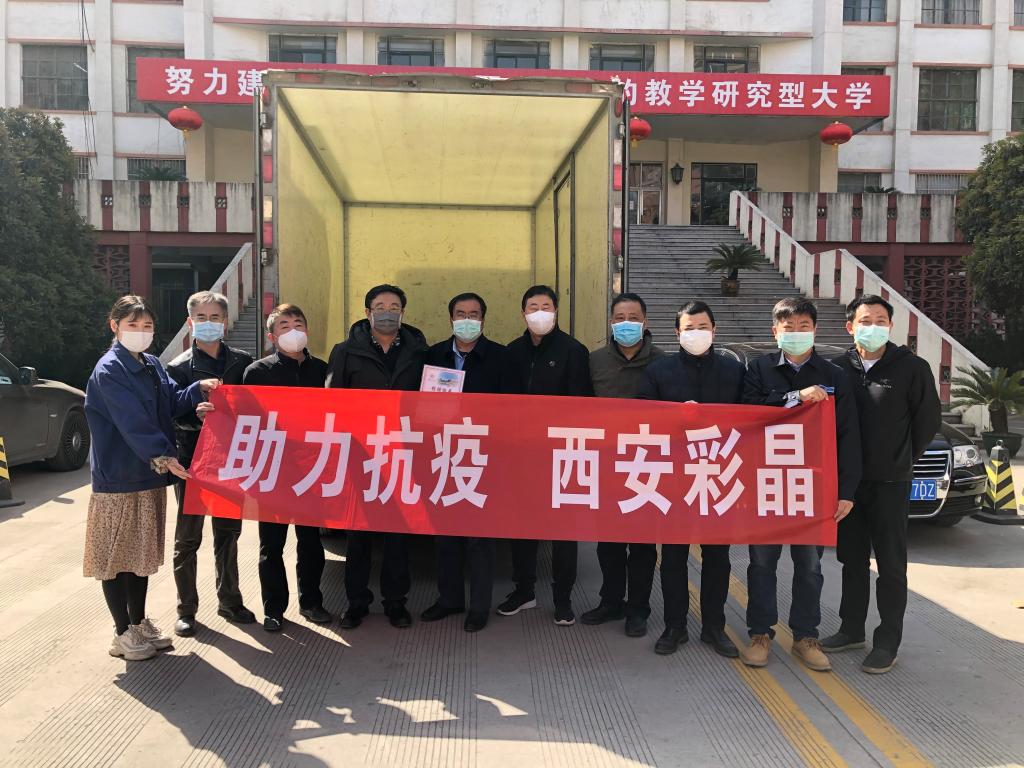 在新冠肺炎疫情防控工作的决胜时刻,经纺织科学与工程学院联系,西安彩晶光电科技股份有限公司向永利官网捐赠过氧乙酸消毒液。3月17日上午,西安彩晶光电科技股份有限公司将抗疫物资送达永利官网金花校区,永利官网副校长、防控工作领导小组副组长李鹏飞、殷永建代表学校接收了捐赠物资。李鹏飞向西安彩晶光电科技股份有限公司人力资源总监赵峰颁发了捐赠证书,并对企业支持学校防疫工作表示真挚感谢。他希望双方继续加强联系,疫情结束后,...