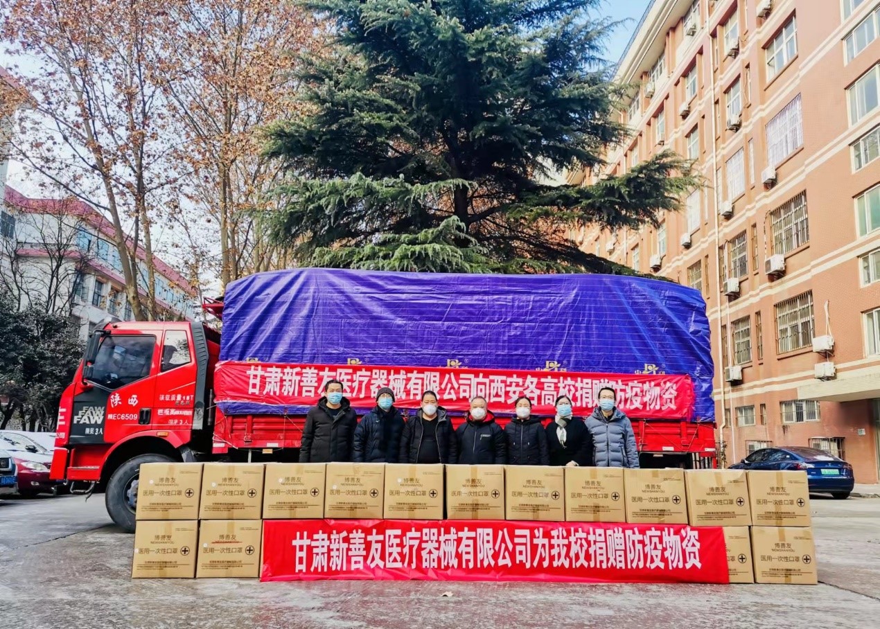 西安本次疫情爆发后,各地校友组织、校友企业、合作企业纷纷表示关切,国内合作与校友工作处和国有资产管理处第一时间对接,了解防疫物资需求,积极联系校友组织、校友企业、合作企业,寻求支持。12月26日,大雪初晴,纺织科学与工程学院的合作企业——甘肃新善友医疗器械有限公司向永利官网捐赠一批总价值10万元的防疫物资,包括KN95 口罩,KF94 鱼型口罩,一次性医用口罩。甘肃新善友医疗器械有限公司自2020年2月成立以来,纺织科...