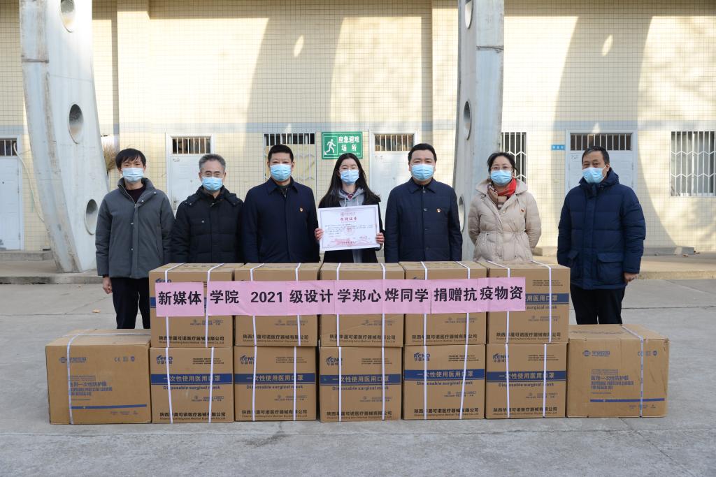 1月13日,新媒体艺术学院2021级设计学郑心烨同学为学校捐赠了20000只一次性医用口罩和120套防护服。校党委副书记赵小峰、副校长朱永民,学生工作部(处)、国内合作与校友工作处、国资处和新媒体艺术学院等部门负责人和教师代表学校接收了捐赠物资。郑心烨表示,她在担任志愿者的时候,看见核酸检测工作人员穿脱防护服十分繁琐,摘下口罩时脸上会有很明显的印痕,想为大家做点事情。这段时间看到学校老师们坚守在自己的岗位上,...