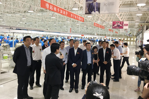 5月27日上午,银川瑞纳服饰有限公司时尚女装生产线投产仪式暨银川“国家智慧型纺织基地”、银川如意时尚学院和银川智慧纺织实训(产业扶贫)基地落成典礼在银川市滨河新区举行。