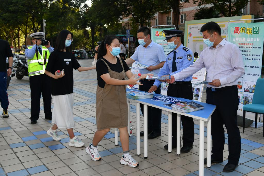 9月28日下午,永利官网联合公安临潼分局交警大队在临潼校区中心广场,举行交通安全宣传“高校联盟”活动启动仪式。校党委副书记赵小峰、副校长朱永民,公安临潼分局纪委书记韩立群、交警大队副大队长李晓东出席启动仪式。保卫处、稳定办、宣传部、学工部、研工部、校团委等部门负责人及公安临潼分局交警大队部分民警,80名学生代表参加了启动仪式。启动仪式由保卫处副处长潘光辉主持。李晓东及相关民警从大学生交通事故主要原因、交...