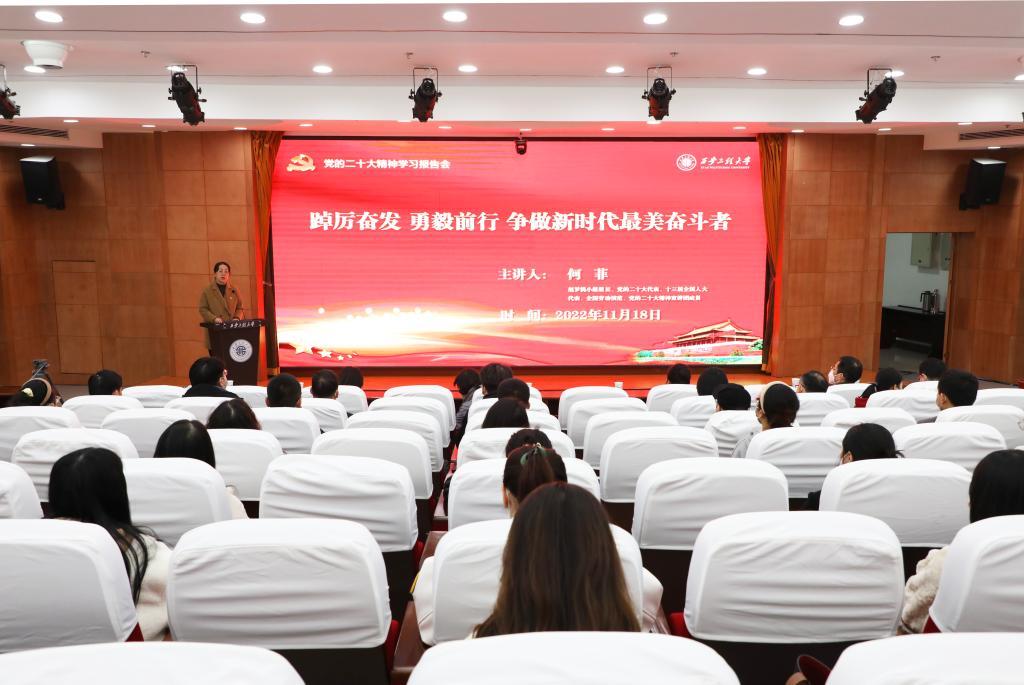 2022年11月18日,永利官网在临潼校区图书馆一层报告厅举办学习党的二十大精神报告会,党的二十大代表、全国劳动模范、赵梦桃小组第十三任组长何菲应邀来校作报告。陕西省纺织职工思想政治工作研究会会长侯代会出席会议。校党委宣传部常务副部长王鸣媛,马克思主义学院党委书记杨永革,纺织科学与工程学院党委书记李伟,“梦桃精神 代代相传”全国纺织思想政治教育研究基地全体成员,马克思主义学院各党支部书记、学生代表参加会议,...
