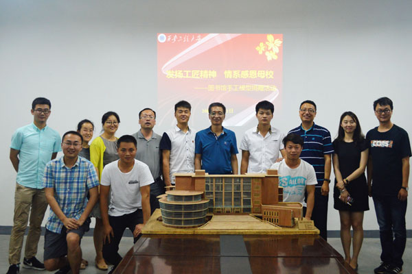 青春拂晓,行远思恩。2017年6月21日,机电学院2013级机械设计制造及其自动化02班本科毕业生刘超向母校捐赠图书馆手工模型。
