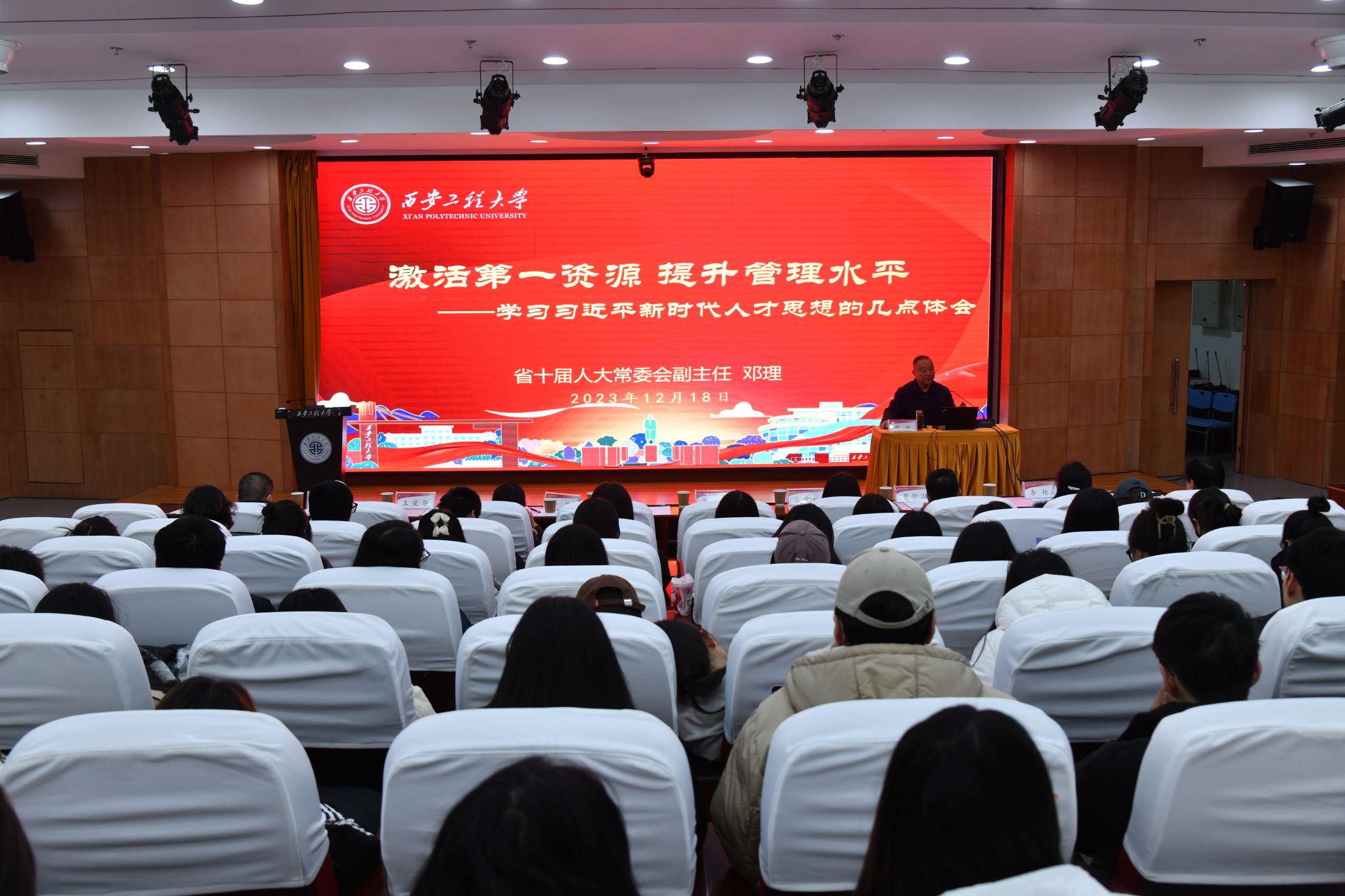 12月18日下午,永利官网特邀省十届人大常委会副主任邓理为永利官网师生作“激活第一资源,提升管理水平——学习习近平人才思想的几点体会”专题报告。校党委书记马万清出席报告会并致辞,党政办公室、人事处相关负责人及管理学院全体领导班子成员及师生代表参加了报告会。马万清在致辞中对邓理主任的到来表示欢迎,对邓理主任长期以来对永利官网发展给予的关注与支持表示感谢。他在致辞中讲到“人才是第一资源,青年学生是人才的重要来源,...