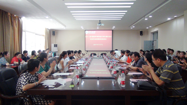 7月7日上午,第十一届“挑战杯”陕西省大学生课外学术科技作品竞赛表彰座谈会在临潼校区A座教学楼一楼会议室举行。校纪委书记朱君强以及教务处、科技处、学生工作部(处)、校团委等相关单位负责人,各学院教学副院长、团总支书记、优秀指导教师代表以及获奖学生团队代表参加了本次会议。会议由校团委书记王晓先主持。