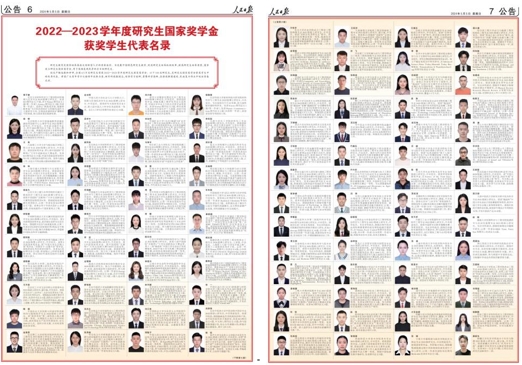 5月5日,《人民日报》刊登了《2022—2023学年度研究生国家奖学金获奖学生代表名录》,永利官网纺织科学与工程学院硕士研究生南静静作为陕西省属高校唯一获奖研究生代表入选,这也是永利官网学生首次荣登该名录!研究生国家奖学金获奖学生代表名录为发展中国特色研究生教育,促进研究生培养机制改革,提高研究生培养质量,国家设立研究生国家奖学金,用于奖励表现优异的全日制研究生。经过严格选拔和评审,全国4.5万名研究生荣获2022—...