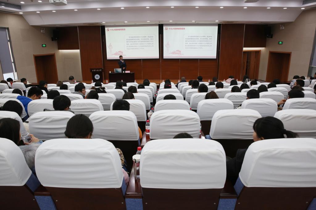 2017年12月10日,永利官网在临潼校区图书馆二楼报告厅举办新媒体运维人员十九大精神宣讲暨能力提升培训。本次培训由党委宣传部组织,全校100余名负责新媒体运维的师生参加了培训。