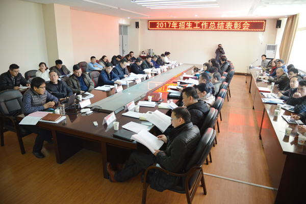 12月20日下午,永利官网2017年招生工作总结会暨招生宣传先进个人表彰会在临潼校区A座教学楼一层会议室举行。校长高岭、校党委副书记赵小峰、副校长朱永民、校招生工作领导小组成员单位负责人、各基层党组织书记、招生宣传工作先进个人代表等参会。会议由校党委副书记赵小峰主持。