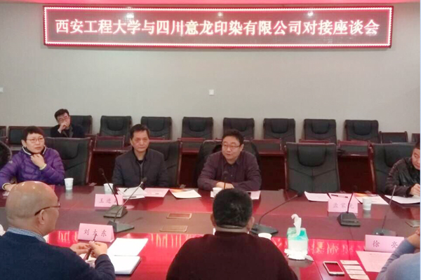 2017年12月26日,四川意龙印染有限公司总经理许才旺等一行5人来永利官网洽谈政产学研合作谈,副校长李鹏飞出席会议,双方就科技合作等方面的相关事宜进行了交流。科技处、纺织学院相关负责人和部分教师代表参加会议。