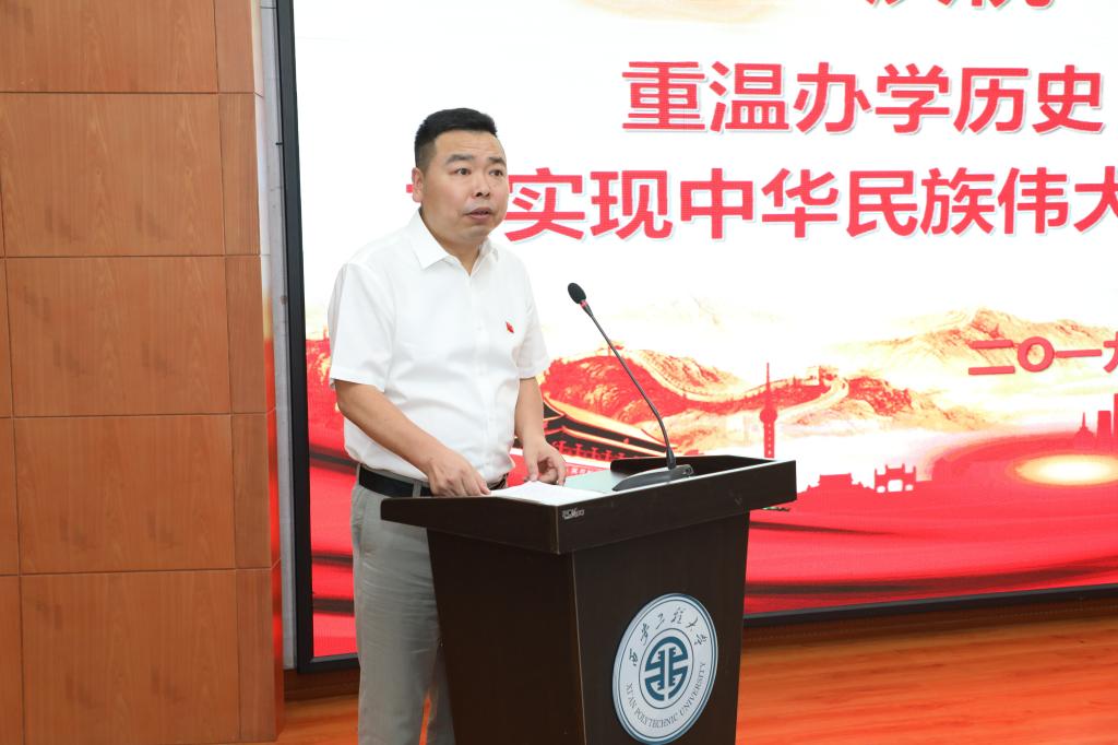 会议的主题为“重温办学历史,不忘初心、牢记使命,为实现中华民族伟大复兴的中国梦而接续奋斗”。全体校领导、各院部级党组织书记、副书记,全校各基层党支部书记及师生党员代表参加了大会。会议由校党委副书记赵小峰主持。