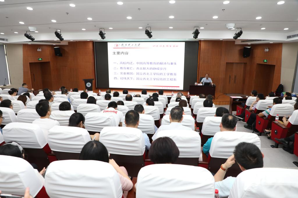 西北联合大学联盟副秘书长、西北联大口述史研究中心主任、陕西理工大学西北联大研究所所长陈海儒教授做了主题为“西北联大及西北高校教育发展史”的报告。在报告中,陈海儒教授讲述了中国高校内迁带来的颠沛与重生,追忆了西北联大的峥嵘岁月,介绍了国立西北工学院的工学教育,同时追溯了西北工学院纺织工程系的发展历史。西北联大师生在动荡岁月中展现出的爱国重教、研究学术、服务社会、传承文化、艰苦奋斗的大学精神,通过陈海儒教授的讲述跃然于前。