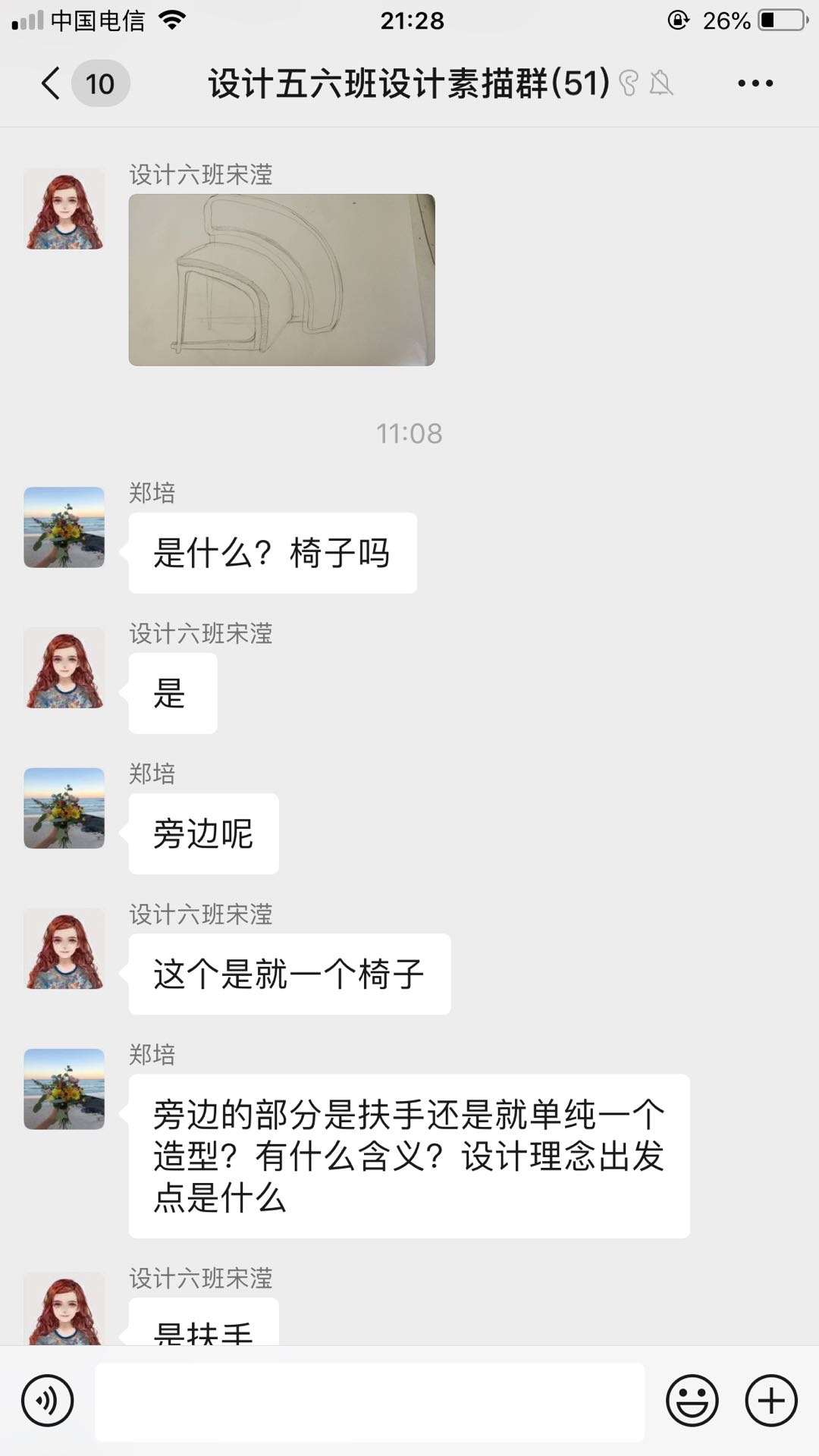对于一年级的设计类专业的学生,在为他们讲授《设计素描》课程时,由于无法面对面指导,基础部郑培老师就采用智慧树、QQ直播等平台先讲授理论内容,然后学生自主进行绘画练习。老师则进入微信群给学生逐一解答问题,学生们将自己的素描作品拍成图片随时上传微信群,老师对学生绘画的每一步骤的情况分别地进行具体指导。这种形式基本确保了和线下教学一样的教学效果。