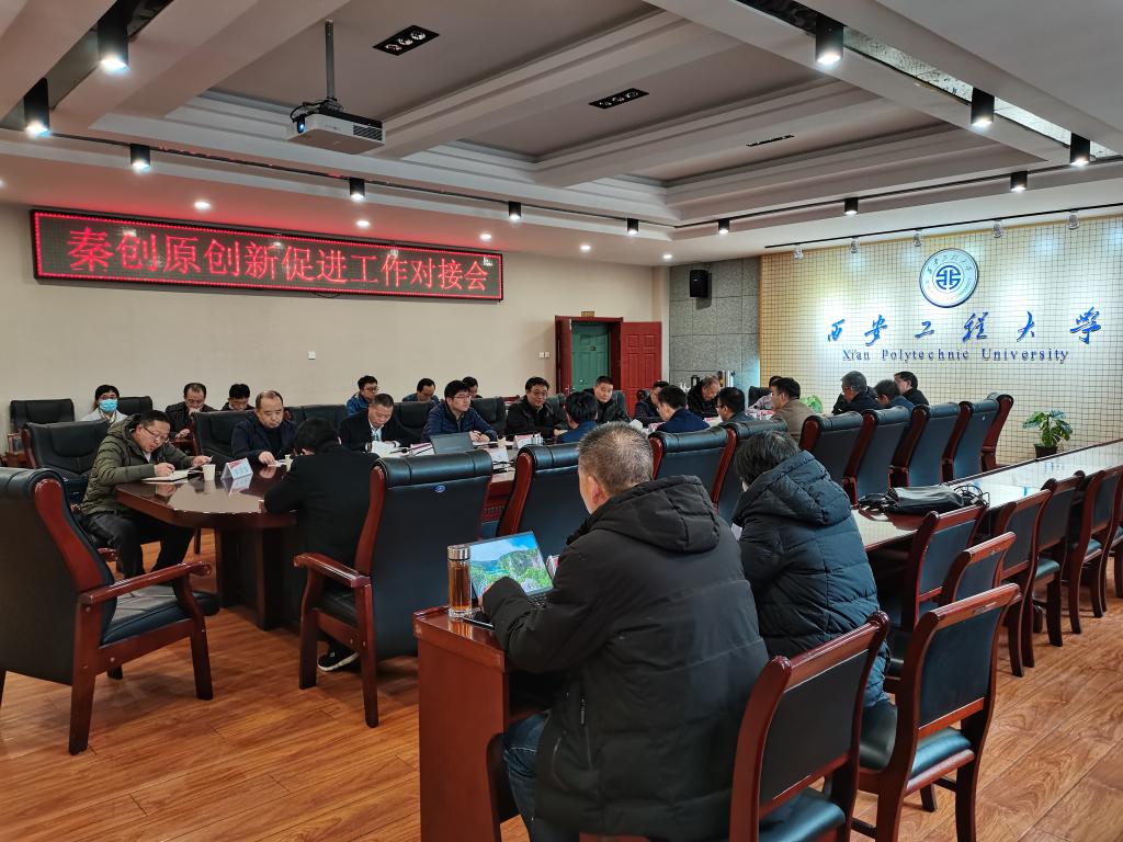 秦创原创新促进中心副主任卢宁、创新促进中心协同创新部副部长杨少杰、春种基金投资经理唐肖龙、创新促进中心科技经纪人吴军军;永利官网副校长李鹏飞出席会议并讲话。科技处、时尚文化创意产业园、科技成果转化中心、前沿技术融合办公室部门负责人;纺织科学与工程学院、机电工程学院、环境与化学工程学院、电子信息学院、管理学院、服装与艺术设计学院、理学院、计算机科学学院、新媒体艺术学院、材料工程学院、城市规划与市政工程学院院长及部分教师代表等30余人参加了会议,会议由科技成果转化中心主任张瑾主持。