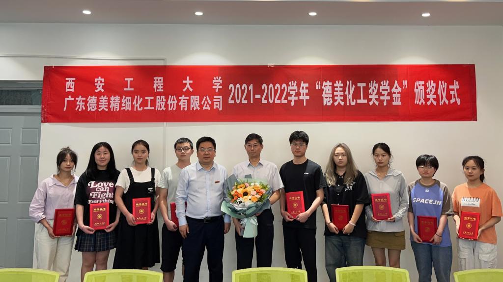 会上,国内合作与校友工作处处长郭可义宣读了表彰决定。本年度获得“德美化工奖、助学金”的学生20人,吴少新为荣获2021-2022学年“德美化工奖学金”的同学们逐一颁发荣誉证书。