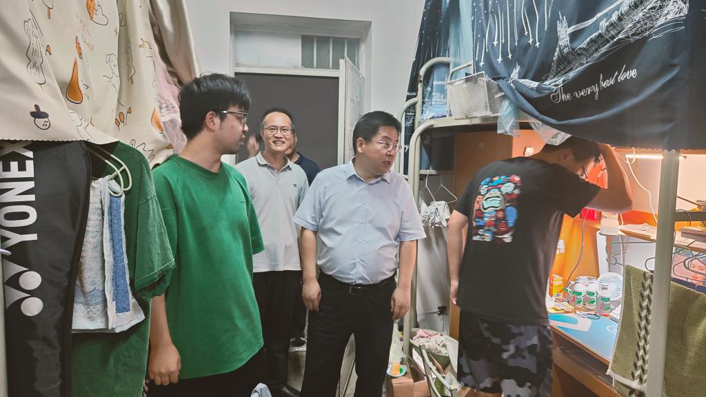 在检查过程中,井浩指出,一是要认真分析假期做好校园稳定安全工作的要求,牢牢把握住留校学生和管理服务两个工作重点,层层压紧压实责任,落细落实工作举措,牢牢守住稳定安全底线。二是要认真落实学校文件中要求的“暑假期间,凡与学校中心工作无关的事项,一律暂停或暂缓进行;校外单位需在校内举办各类活动和校内单位举行大中型活动的,一律先报批再进行”的要求,宁可十防九空,不可失防万一。三是要紧盯食品卫生、用水用电、燃气管线、校园交通、建设项目、实验室安全等重点风险区域,严格落实“防在前、早发现、快处置”工作要求,突出抓好风险防控,及时有效处置问题,推动各类风险隐患发现在早、防范在先、处置在小,坚决防范遏制重大安全稳定事故发生。四是是要切实强化“事事放在心上、事事抓在手上”的执行力,严格落实值班备勤制度和管理人员、导师联系指导学生制度,让计划变成行动,让行动化为结果,不怕事、不避事、不畏事,着力消除“看不到、想不到、管不到”的盲区盲点,确保假期安定有序,切实维护师生生命安全和校园和谐稳定。(撰稿:李成卓 审稿:张骥)