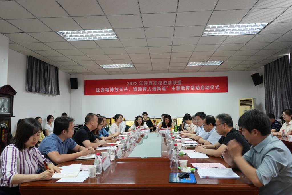 举行启动仪式,拉开活动帷幕。7月17日上午,陕西高校资助联盟在永利官网金花校区举行“延安精神放光芒,资助育人谱新篇”主题教育研学活动启动仪式,仪式由学生工作部部长王志主持。井浩致欢迎词,他表示,资助育人工作是一项保民生,促公平工作,面向获奖受助学生大力开展道德浸润、能力拓展、精神激励等育人工作意义重大。祝愿陕西高校资助联盟高校相互学习、共同进步、携手做好资助育人工作。“追寻红心建立新功”是2023年的第一项研学活动,希望走进延安研学基地的师生传承红色血脉,踔厉奋发、笃行不怠;陕西高校资助联盟高校相互学习、共同进步、携手做好资助育人工作。姬建鹏向参加研学活动的师生提出四点希望:一是希望参加活动的同学成为资助政策的传播者、知恩感恩的践行者和延安精神的传承者;二是希望参加活动的老师不忘为学生服务的初心、用春风化雨的情怀书写资助大爱;三是希望资助联盟高校加强合作,密切联系,凝聚起推动陕西资助高质量发展的磅礴力量;四是希望轮值单位在本次活动后做好梳理总结,促进资助联盟不断发展。受助学生代表发言表示,非常珍惜本次研学活动,将在研学活动中勤思善悟,自觉把个人成长融入党和国家发展中,心怀感恩、砥砺前行。启动仪式上,永利官网马克思主义学院赵鹏副教授为大家作了题为《在党的发展历程中汲取智慧和力量》的精彩报告。