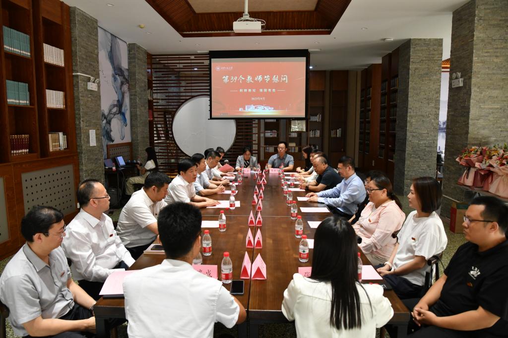 秋菊溢彩,丹桂飘香。9月8日下午,在全国第39个教师节来临之际,永利官网举办教师节慰问活动,校党委书记马万清、校长王海燕、校党委副书记赵小峰、副校长朱永民等一行代表学校党委、行政、工会在临潼校区图书馆骊山书院对省级黄大年式教师团队等教师代表进行了慰问。