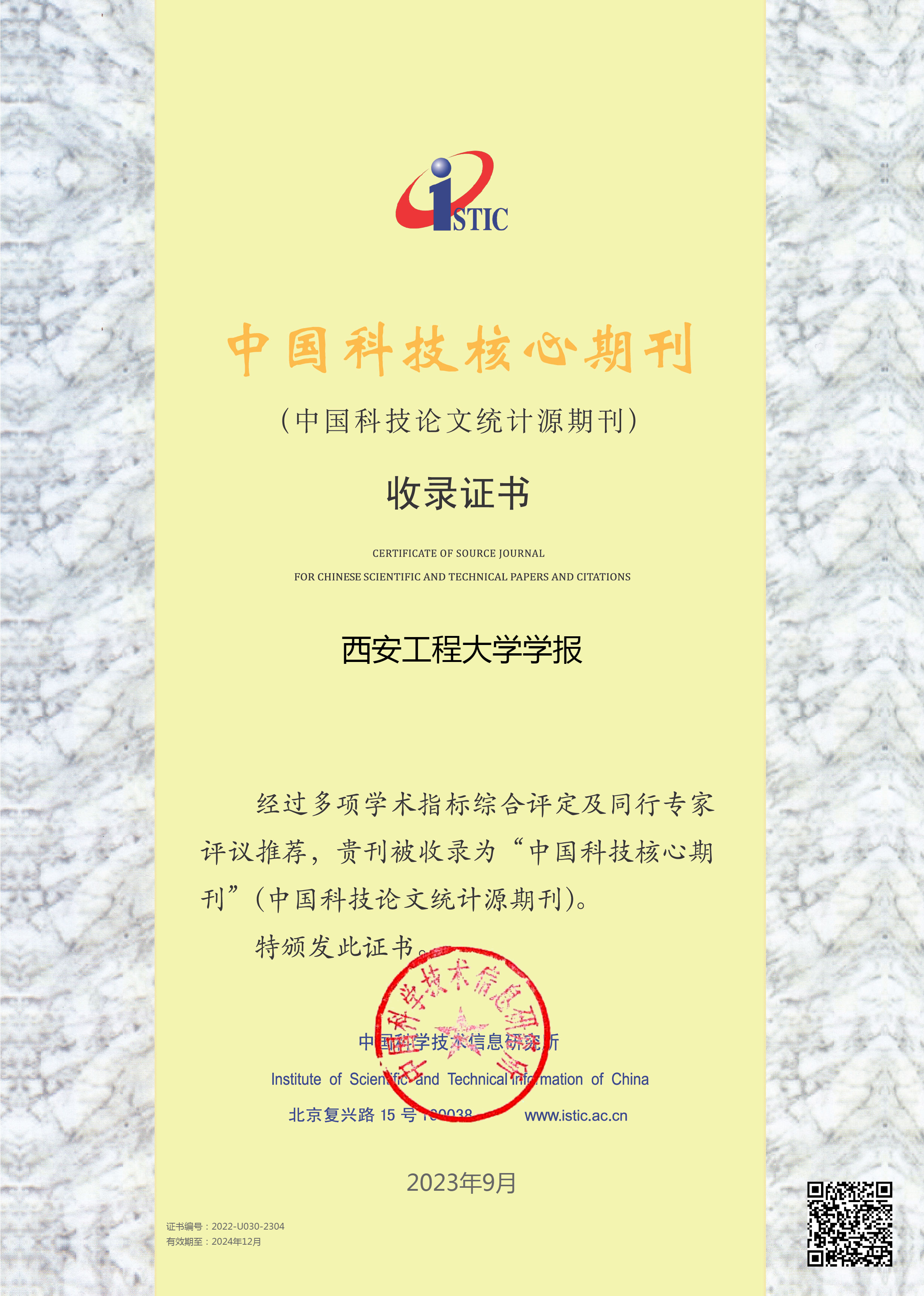 9月20日,中国科学技术信息研究所公布了“2023年版中国科技核心期刊目录”,永利官网主办的《yL23411永利官网登录学报》《纺织高校基础科学学报》再次入选。两刊的再次入选意味着其学术水平和影响力得到了进一步的认可和肯定,同时也意味着两刊在推动学术研究、促进行业发展方面将发挥更加重要的作用。