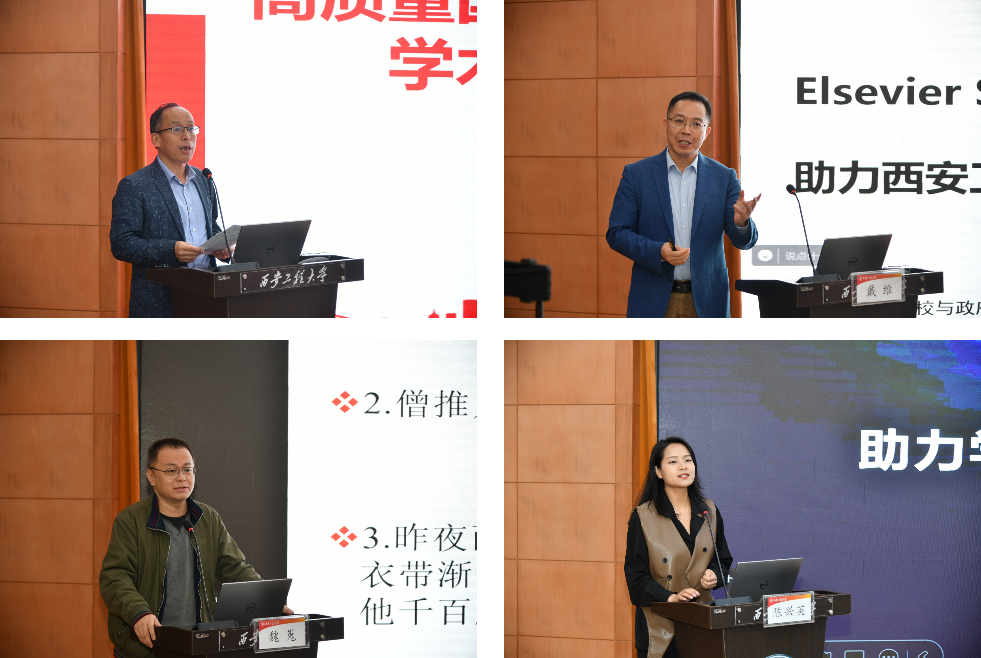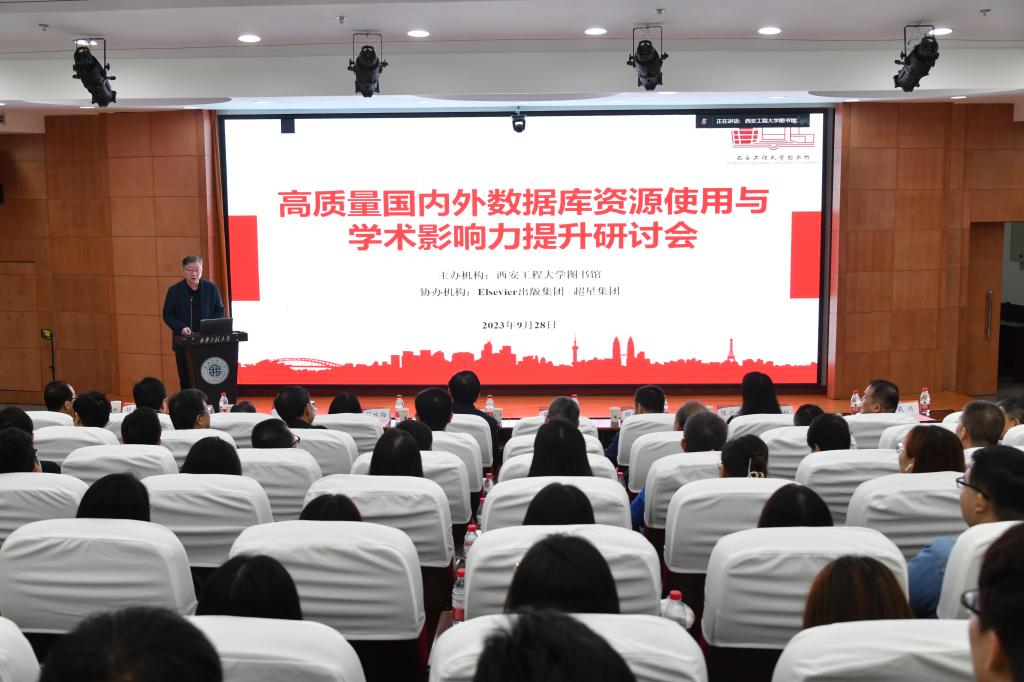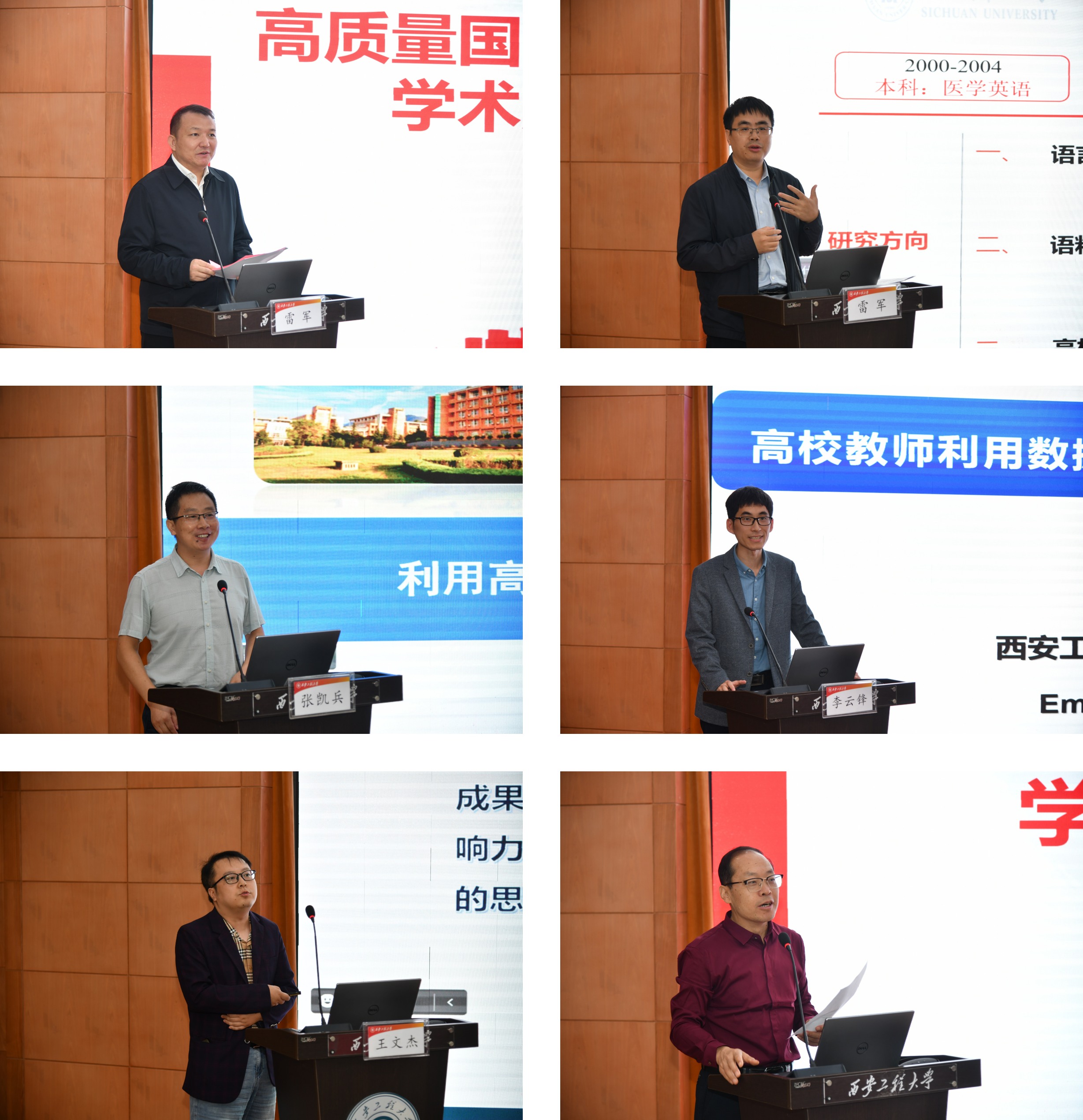 嘉宾报告环节,两个半场分别由西安交通大学图书馆副馆长杨峰和西北工业大学图书馆副馆长郝保权主持。七个专题报告紧密围绕国内外高质量数据库的使用,阐述了数据资源在科研产出和学术影响力提升方面的重要意义。其中,爱思唯尔大学与政府部总监戴维及超星集团高级讲师陈兴英分别以ScienceDirect数据库和超星发现平台为例阐释了永利官网科研表现分析,并对如何利用高质量数据库支持科研以及提升学术影响力提供了建议。西安理工大学陕西汉江学者特聘教授魏嵬、宁波大学外国语学院教授雷军,永利官网计算机科学学院副院长张凯兵、环境与化学工程学院教授李云锋、电子信息学院副教授王文杰分别结合数据库的海量文献资源及自身的科研经历,在如何撰写高水平论文及提升科研水平方面作了精彩的专题报告。研讨会气氛浓厚,线上、线下嘉宾和师生代表认真聆听讲座。