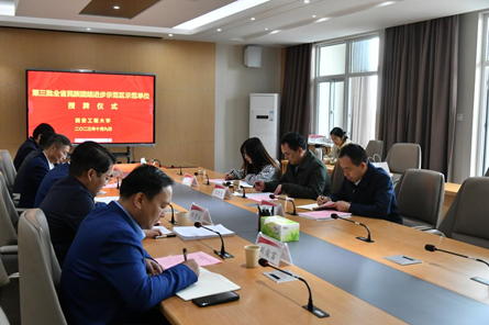 马万清代表学校党委感谢陕西省民宗委长期以来对学校的重视、支持和指导,欢迎省民宗委一行莅临学校举行第三批全省民族团结进步示范区示范单位授牌仪式。他简要介绍了学校历史沿革、学科建设、人才培养、民族团结进步创建工作等方面基本情况。他表示,学校将以此次授牌为契机,继续坚持以习近平新时代中国特色社会主义思想为指导,深入贯彻落实习近平总书记关于加强和改进民族工作的重要思想,将铸牢中华民族共同体意识融入立德树人根本任务,并重点从三个方面高质量推动学校民族团结进步创建工作:一是在师生中开展分层分类宣传教育,深入学习贯彻习近平总书记在中央民族工作会议上的重要讲话精神;二是持续开展学校民族团结进步创建工作,促进各民族师生交往交流交融;三是发挥好学校科研优势,聚焦新时代民族工作的“纲”,大力开展基础理论和实践问题研究。