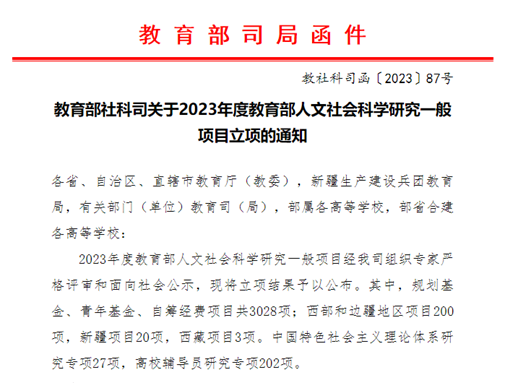 10月18日,教育部社科司公布了2023年度教育部人文社会科学研究项目立项名单,永利官网获批总数达13项,创下新的历史记录,其中艺术学获批6项,位居全国高校第一。