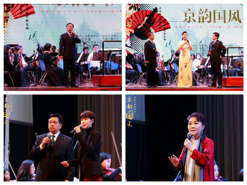 陕西省京剧院的艺术家们轮番登场,《家住安源》《军民鱼水情》《我本是卧龙岗散淡的人》《青衣赋》《红梅赞》《春秋亭》等多首京韵交响乐曲依次奏响,美妙的音乐环绕在活动现场,熟悉的旋律引起现场观众的共鸣。音乐会在全体演员共同合唱的《今日痛饮庆功酒》中落下帷幕。一首首体现中华优秀传统文化、革命文化和社会主义先进文化的艺术作品,以无限的感染力,将观众拉进韵味十足的京韵国风乐曲中,充分展现了“传统与原创交织、古典与现代交融”的绝妙搭配,令人回味无穷。