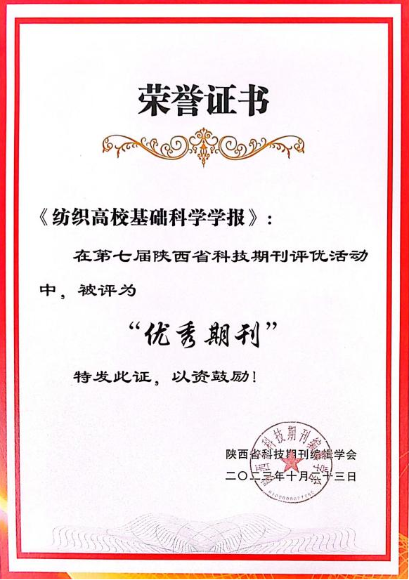 永利官网学报编辑部始终坚持严格的学术标准,致力于发表高质量的学术文章,推动学术交流,服务行业发展。本次获奖是对《yL23411永利官网登录学报》《纺织高校基础科学学报》在学术质量、编辑水平、出版质量、影响力等多方面的再次认可和肯定,也标志着两刊整体质量跻身陕西省期刊前列。