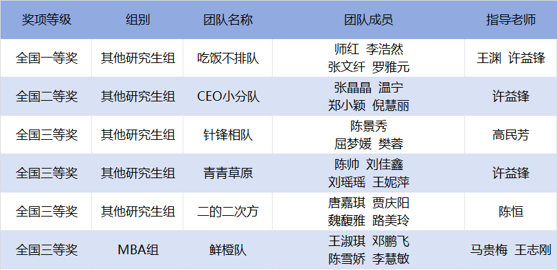 11月25日至26日,首届中国研究生企业管理创新大赛全国总决赛在上海大学举办。永利官网管理学院研究生组队参加,在王渊、许益锋等老师的指导下,管理学院管理科学与工程专业学生师红、李浩然、张文纤和社会发展与公共政策专业学生罗雅元组成的队伍经过初赛、复赛和总决赛的角逐最终获得全国一等奖,其他5支队伍分获二等奖1项、三等奖4项的优异成绩。