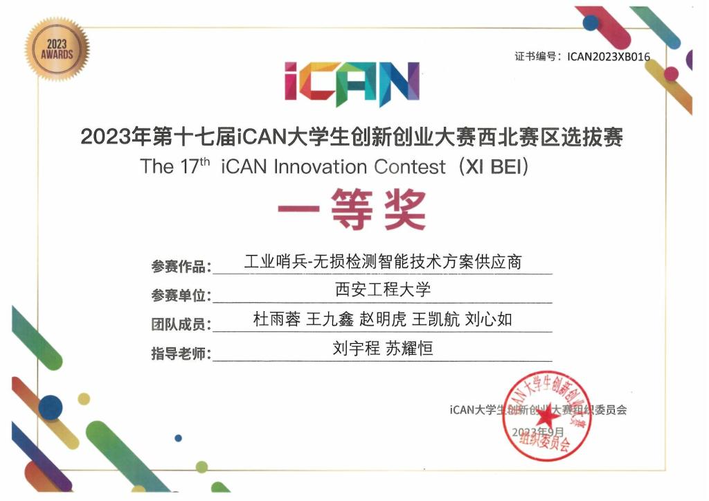 本届大赛西北赛区竞赛由西北工业大学承办。永利官网参赛团队作品《工业哨兵—无损检测智能技术方案供应商》由工程训练中心刘宇程和理学院苏耀恒两位教师指导,理学院研究生杜雨蓉、王九鑫、赵明虎,本科生王凯航以及电信学院本科生刘心如等5名学生共同完成。在教务处、实验室管理处、理学院、电信学院等单位的支持下,该项目在工程训练中心历时3年孵化,是众多创客创新实践项目的代表项目之一。
