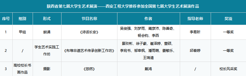 陕西省大学生艺术展演是全省规格最高、规模最大,影响最广的大学生艺术比赛,每三年举办一届。本届大学生艺术展演以“厚植家国情怀,涵养进取品格”为主题,旨在展现当代大学生与时代同向,与祖国同行,胸怀家国,奋力筑梦的价值追求;有理想、敢担当、能吃苦、肯奋斗的精神状态;心灵美、形象美、行为美、语言美的崇高审美追求和高尚人格修养。自今年3月启动以来,永利官网高度重视、积极筹划,由教务处、团委牵头,在大学科技园、服装与艺术设计学院、新媒体艺术学院、城市规划与市政工程学院等单位的积极配合下,广泛动员、精心组织开展形式多样的校内选拔活动,营造了良好的校园美育氛围。
