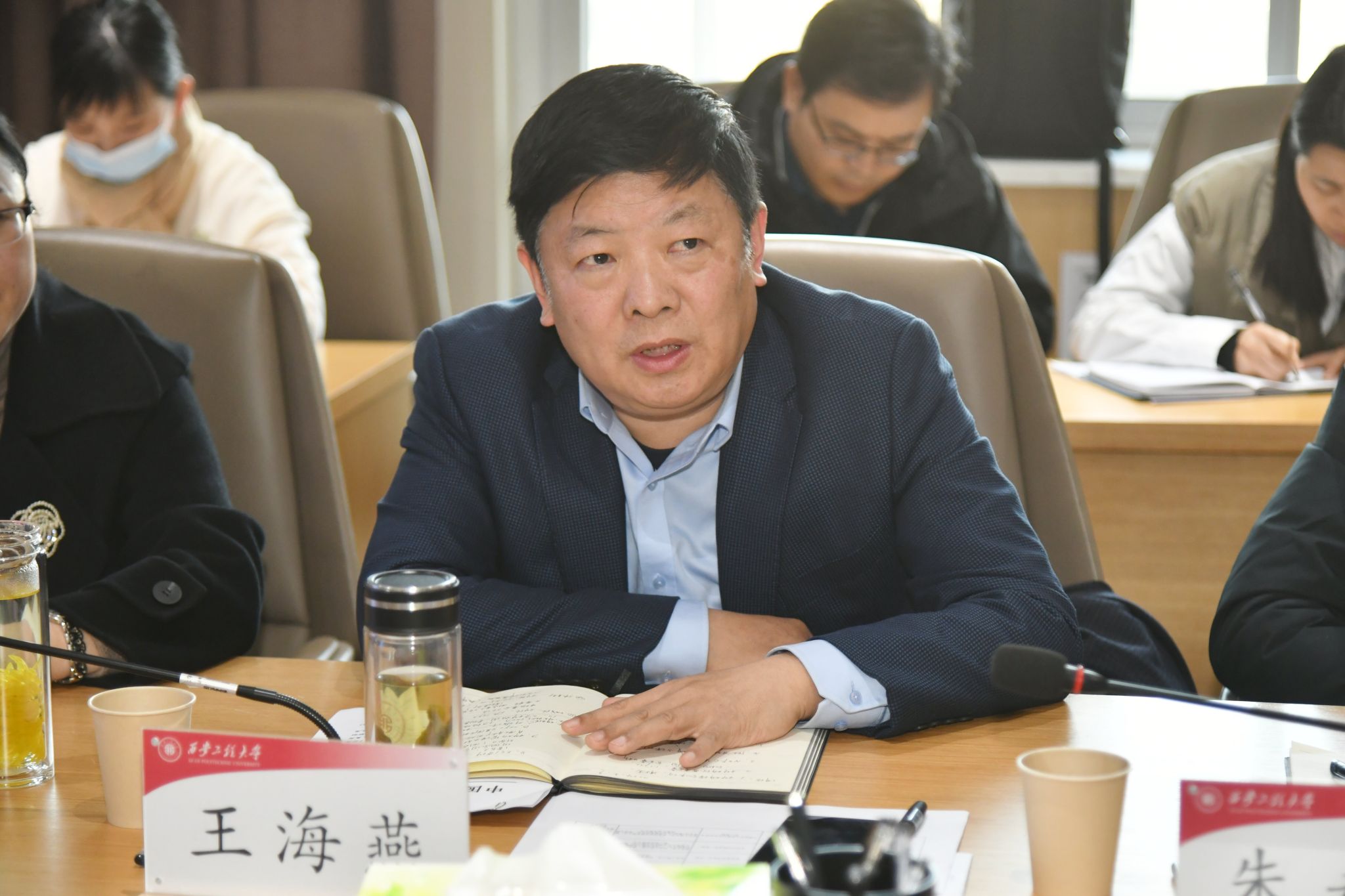 王志刚以重大科技成果转化项目落地、秦创原“以演代评”项目申报为牵引,以科技成果转化“三项改革”措施推进与就地转化为延伸,汇报了大学科技园“一横一纵”的科技工作布局。