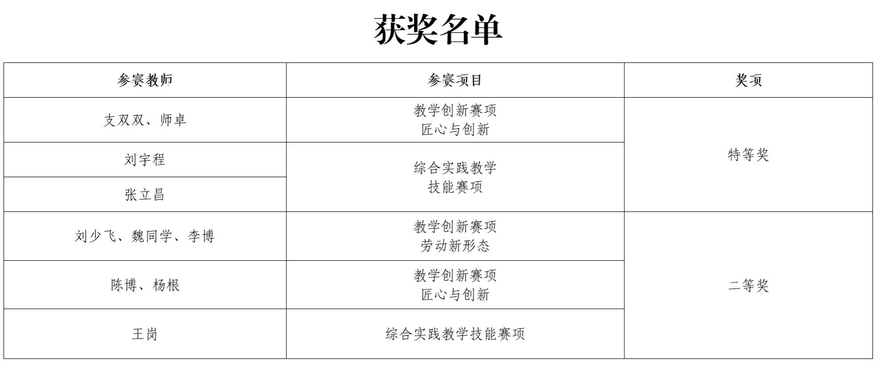 近日,第四届陕西省本科高校工程训练教师教学能力竞赛获奖名单公布,永利官网工程训练中心组织6支队伍参赛,共获特等奖3项、二等奖3项。特等奖排名中,刘宇程与外校教师组成的队伍获综合实践教学技能竞赛第一名,张立昌与外校教师组成的队伍获综合实践教学技能竞赛第三名;支双双、师卓组成的队伍获教学创新竞赛“匠心与创新”赛项第四名。