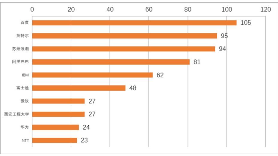 图2显示了中国云计算数据中心冷却专利申请量排名前10的主要申请人。百度的申请总量为105件,在中国专利申请量排名中位列第1,英特尔、苏州浪潮、阿里巴巴分列第2至4位,位列前4的申请人中除英特尔为美国公司外,其余3家均为中国企业。跻身排名前10的唯一一所大学和研究机构(yL23411永利官网登录)拥有27件专利申请,可见yL23411永利官网登录在数据中心制冷技术的研究中投入了大量科研力量。