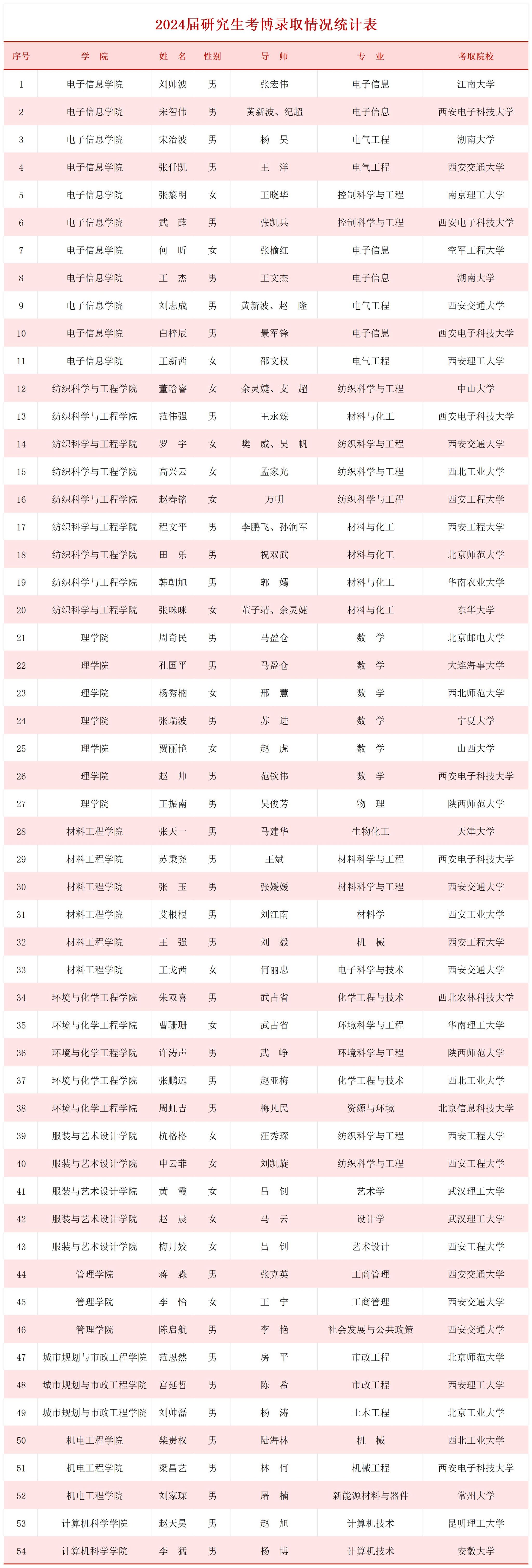 攀山至顶,行海达岸;披星戴月,终得其辉。伴随着各大高校、科研院所博士研究生录取工作接近尾声,永利官网2024届硕士毕业生不负众望,捷报频传。截至目前,永利官网共有54名应届硕士研究生考取国内知名院校博士研究生,录取院校中“双一流”高校比重达74.1%。