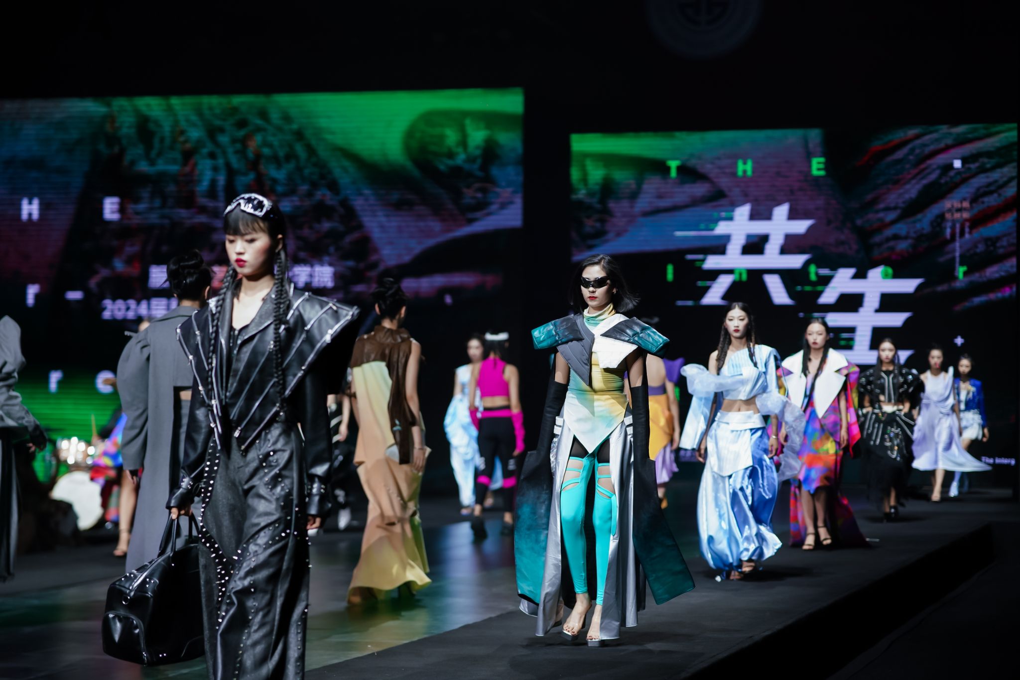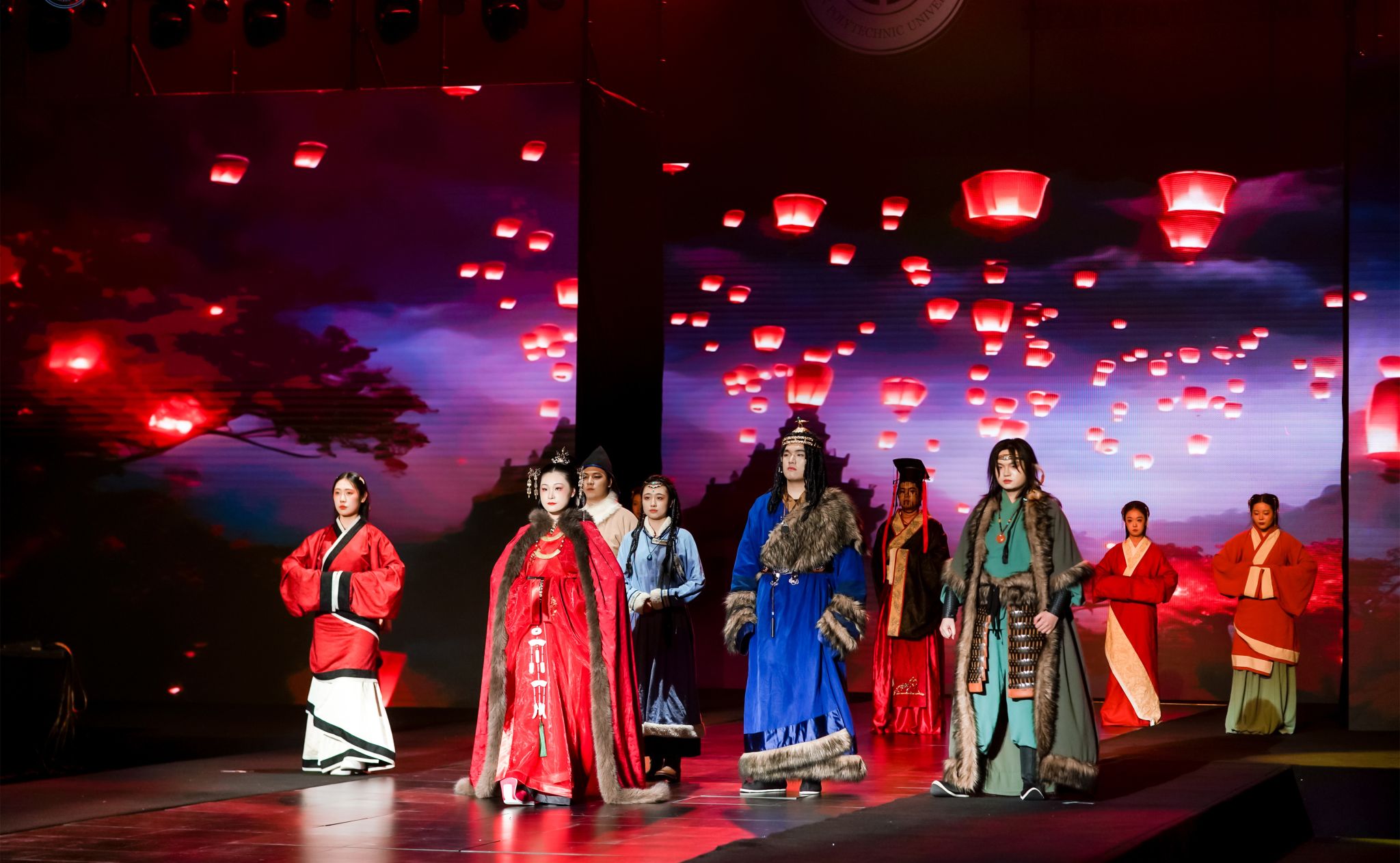 动态展演环节,服装与艺术设计学院带来了主题为《共生》的服装设计展,同学们通过研究中国古典元素,探索了服装设计的全新语境,诠释了传统元素与现代时尚的审美融合,传承弘扬文化经典,引领现代潮流设计,充分展现了当代大学生的文化自信与创新活力。新媒体艺术学院献上《文物有故事》舞台短剧, “家书”“秦王宴饮”“封狼居胥”“昭君出塞”“社尔归唐”“大唐双姝”六个篇章,以6件国宝级文物为开端,演绎文物背后的故事,学子通过现代工艺手法诠释传统服饰之美,还原出秦汉唐三朝的服饰特征和社会风貌。整场内容丰富、形式多样、异彩纷呈,既是对学校人才培养质量的全面检阅,又展现了学生们的才华和创意,彰显出永利官网在中华优秀传统文化传承以及时尚文化创意设计领域的深厚底蕴和丰硕成果。
