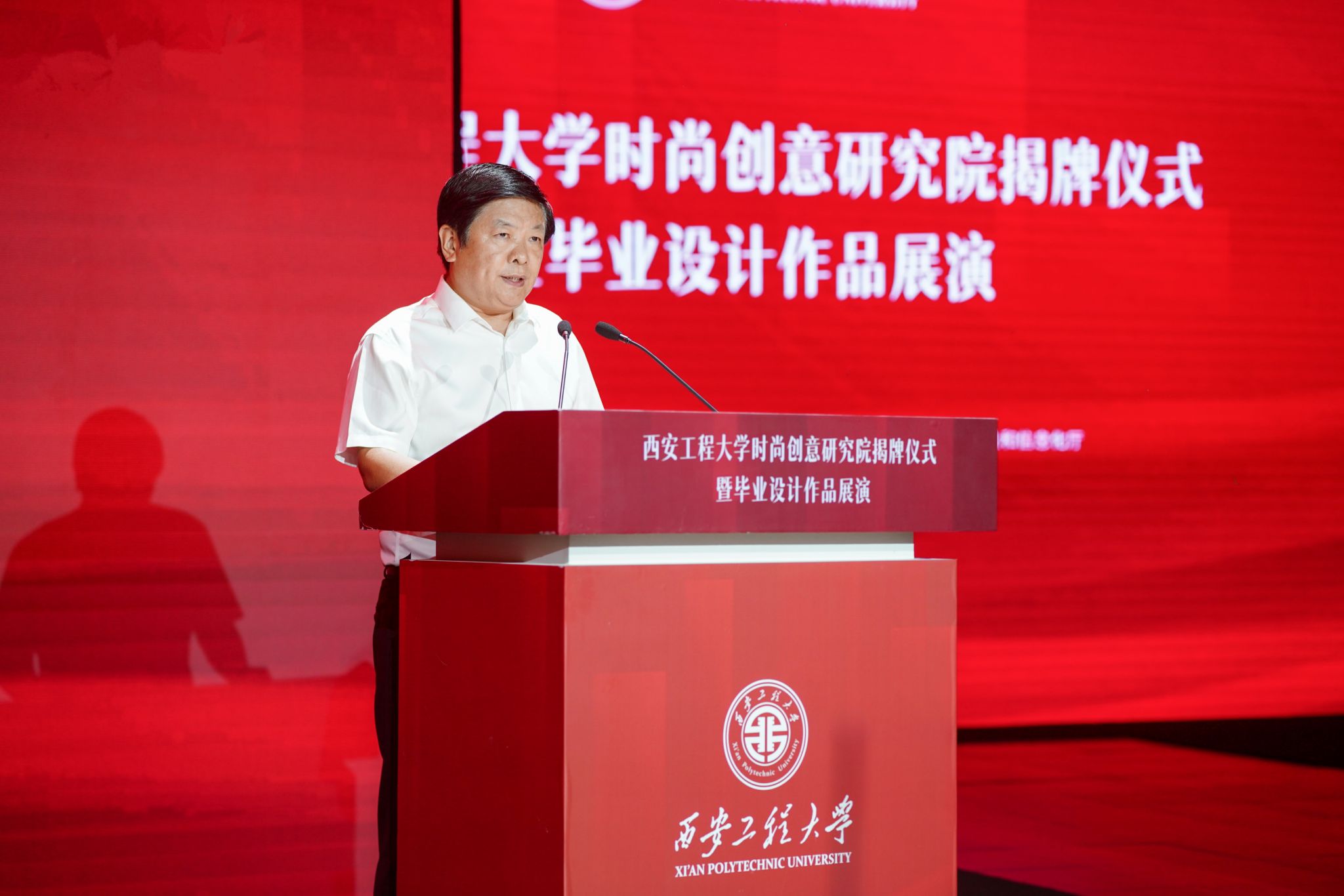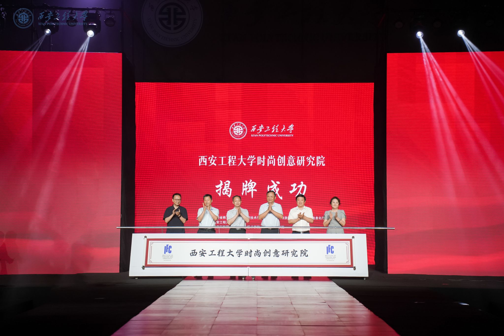 揭牌仪式上,高巍,郑伟良,王钧,王海燕,校党委副书记、纪委书记、监察专员辛永昌,服装与艺术设计学院教授徐青青登台,为时尚创意研究院成立按下发布键,与会领导和师生共同见证了这一高光时刻。