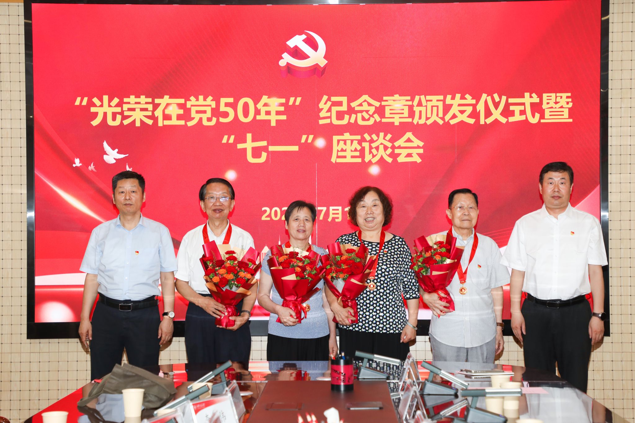 7月1日下午,永利官网在金花校区第三会议室举办“光荣在党50年”纪念章颁发仪式暨“七一”座谈会。校党委副书记、纪委书记、监察专员辛永昌,党委副书记殷永建出席会议并讲话。会议由校党委委员、组织部部长黄海峙主持,党委相关职能部门负责人、部分院(部)级党组织书记、“光荣在党50年”老党员、师生党员代表参加会议。