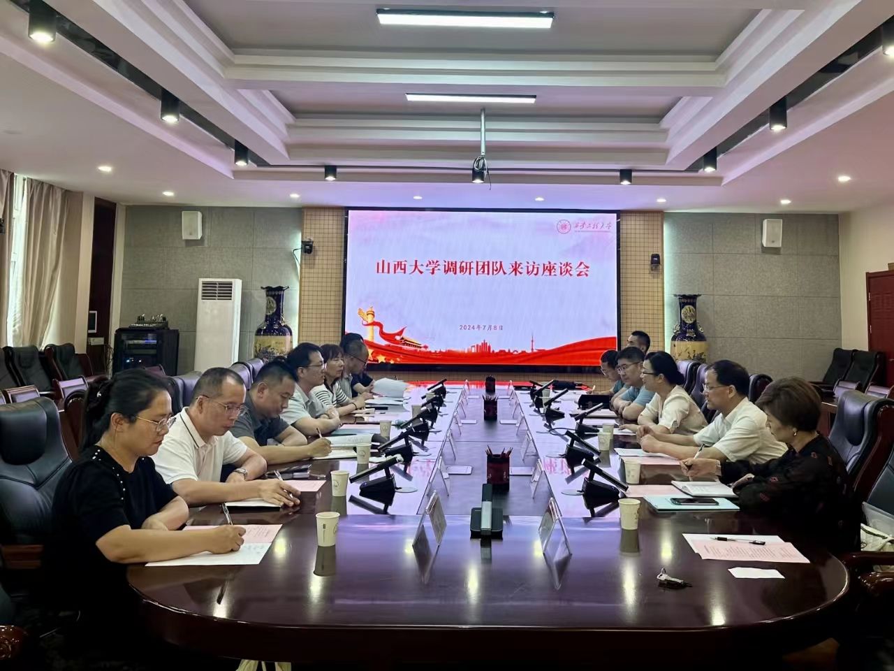近日,山西大学党委常委、副校长马杰一行七人到永利官网访问,双方在金花校区第三会议室召开座谈会。永利官网党委委员、副校长夏蔡娟,科技研究院院长张洛红、大学科技园主任王志刚及相关工作人员参加了此次座谈。座谈会由王志刚主持。