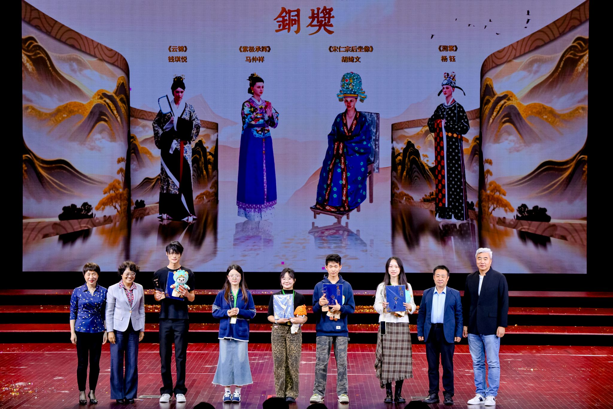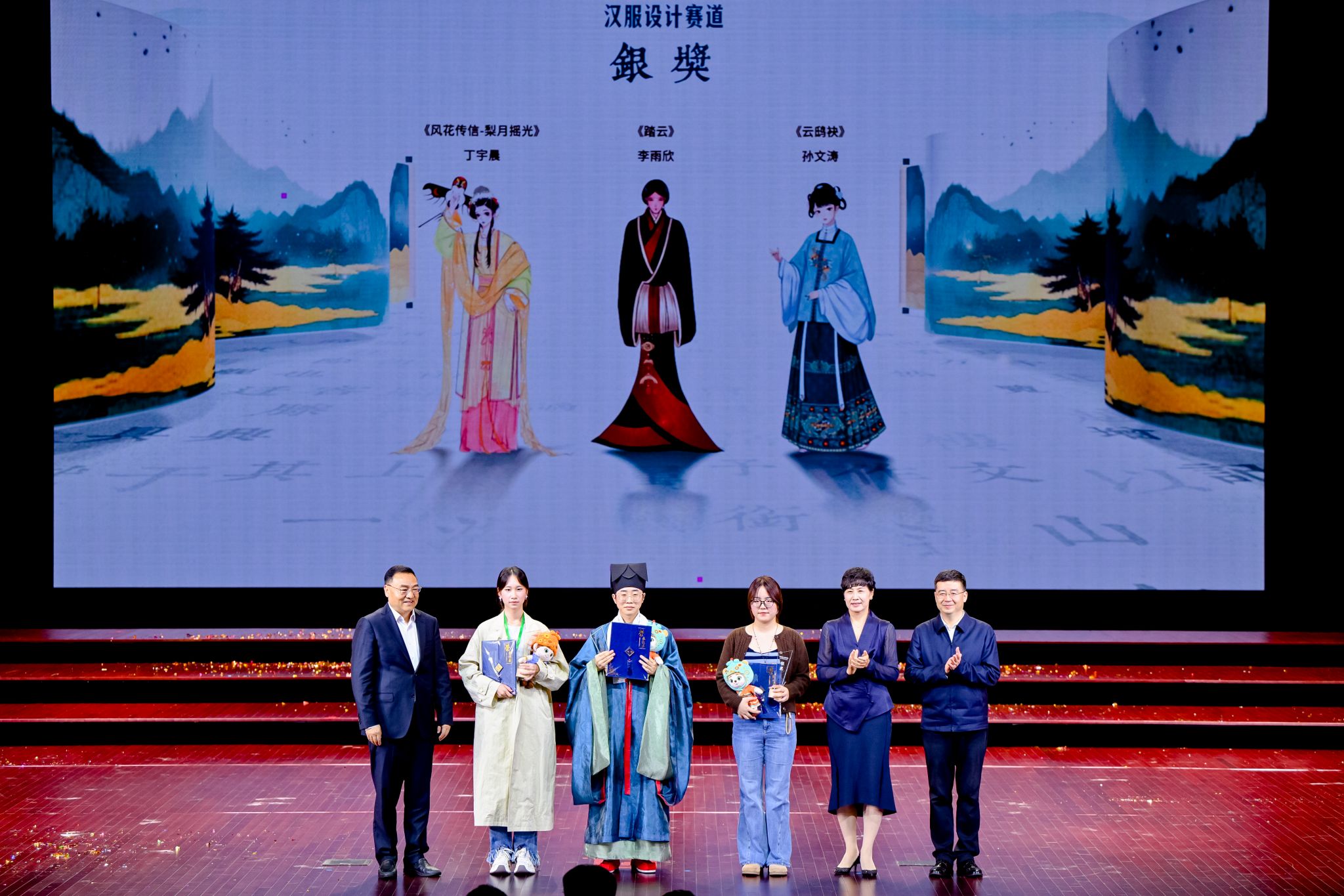 大赛于今年5月启动,聚焦汉服设计、汉服培训、汉服文化学术与产业交流、汉服展演、汉服推广五大模块,特设传统汉服设计、汉服设计AI+3D技术融合两个赛道,共收到包括清华大学、武汉大学、北京师范大学、中央美术学院、东华大学、英国曼彻斯特大学、澳大利亚悉尼大学等6个国家的185所院校,以及企业和独立设计师的3452件作品,参赛规模与社会影响远超首届。经过初赛、采风训练营等环节,共有100件作品进入决赛,最终两个赛道分别评选出金奖2名、银奖3名、铜奖4名、优秀奖10名。在传统汉服设计赛道中,清华大学曾令栀的作品《振朱羽兮越莽苍》、永利官网姬镜涵的作品《镜光鎏影》获得金奖;永利官网丁宇晨的作品《风花传信-梨月摇光》、广东培正学院李雨欣的作品《踏云》、河南科技大学孙文涛的作品《云鸱袂》获得银奖;永利官网陈欣毓的作品《唐宫影》、李明轩的作品《金缕玄甲》,浙江理工大学李奕雅的作品《九歌·东君》、郑奕琳的作品《残荷》获得铜奖。在汉服设计AI+3D技术融合赛道中,天津师范大学邱文年的作品《紫绮赋》、北京服装学院艾于冬的作品《初唐渝彩》获得金奖,扬州大学常嘉星的作品《敦煌梦霓裳》、山东工艺美术学院高云珂的作品《沉吟观复》、安徽工程大学李玥潼的作品《豆蔻云裳:AI+3D重现唐代官家少女的锦瑟年华》获得银奖,永利官网钱琪悦的作品《云锦》、内蒙古工业大学马仲祥的作品《紫极承辉》、江南大学胡绮文的作品《宋仁宗后坐像》、大连工业大学杨钰的作品《溯裳》获得铜奖。徐明非、谢泱、张志昌等领导为获得金奖的选手颁奖。