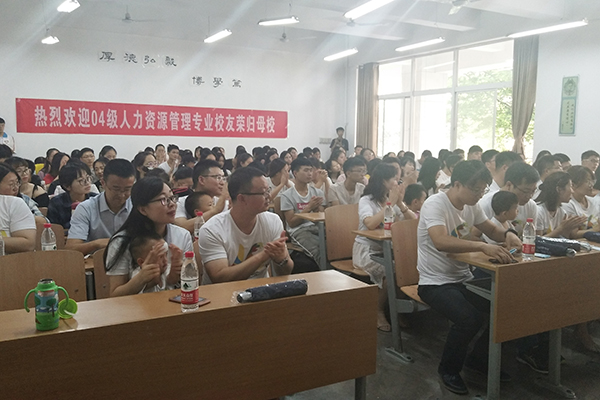 6月9日,管理学院人力资源管理专业2004级27位校友返回母校,开展毕业10周年纪念活动。原管理学院团总支书记胡新煜,人力资源管理专业教师王宁副教授,学院学生工作办公室主任刘蓉,学院辅导员及100余名在校学生代表参加了活动。