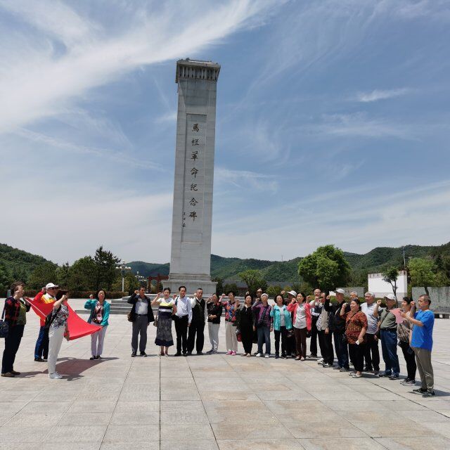 在马栏革命纪念碑前,面对鲜红的党旗,张平同志领誓,大家重温了入党誓词。随后,大家齐声高歌《团结就是力量》和《没有共产党就没有新中国》。(撰稿:黄娟茹 审稿:张平)