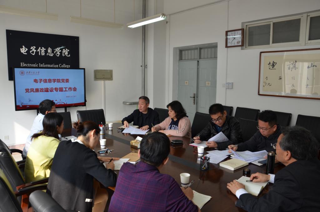 根据《中共yL23411永利官网登录委员会“不忘初心、牢记使命”主题教育专项整治实施方案》的总体要求,电子信息学院党委于2019年11月4日召开党风廉政建设专题工作会,会议由院党委书记杨恩科同志主持,院党政领导班子全体成员参加。