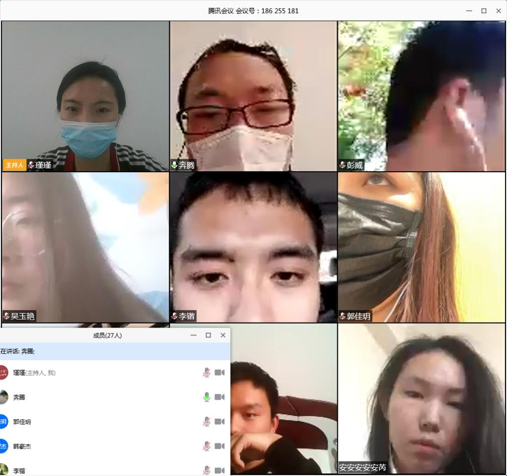 朱瑾首先对大家提出了表扬。自疫情伊始,学院采取了“听声见人”的日报制度,全体同学每日以录制小视频报平安的形式将自己的动态报给三全育人导师团导师,导师甄别汇总整理后上报学院,这期间同学们都积极配合、认真落实。针对目前尚未线下复课,她也提醒大家要利用好这段时间,认真参加线上教学活动,积极联系毕业设计导师完成毕业论文。最后,她还给目前尚未找到工作的同学们加油打气。当前正处在“金三银四”求职应聘的“旺季”,受疫情影响,今年的求职季格外特殊,希望大家能充分利用好线上云招聘平台,多投简历多尝试。对于等待研究生复试的学生,她要求大家好好准备复试,对于考研成绩较低的同学,她也希望大家能够在等待复试期间,多投简历,争取更多的就业机会。