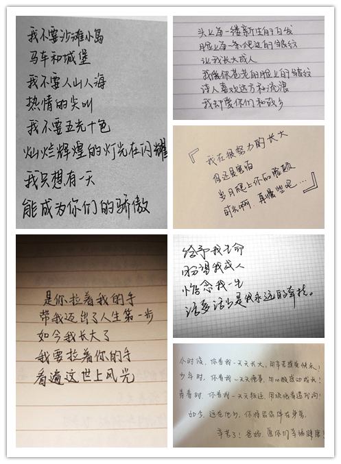 在“纸短情长”的作品中,同学们以笔寄情,用最简单的三行文字勾勒出对父母最深的祝愿,纸虽短,情却长,回笔一句,即是心中对父母最真实的挂念,即是写给父母真实的心声。同时,在“时光记录者”的相关作品中,同学们分享了一些与家人在一起的,做家务、做游戏、做手工等日常活动的照片,画面虽小,却是在最富有感情的那一瞬间,定格下了与家人相处的美好时光。陪伴亲人的时间,它总是在不经意中缓缓流逝,而唯有那些在人生不同节点中留下的相片,才能够永恒地记录着这温馨的一刻。