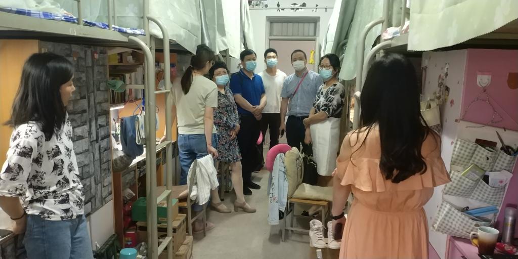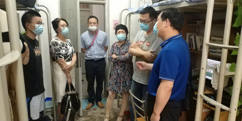 “回校后的生活是否习惯”“毕业论文准备得怎么样”“工作找得怎么样”“研究生报考哪个学校”“要特别注意疫情个人防护”“要调整好状态”“要多通风多锻炼”……每到一个宿舍,学院领导和老师都会详细了解学生的生活、毕业论文、求职、考研等情况,鼓励同学们正视困难,调整状态,积极面对,并督促返校学生做好疫情防控,同时表示学院会尽力为每位毕业生做好服务。