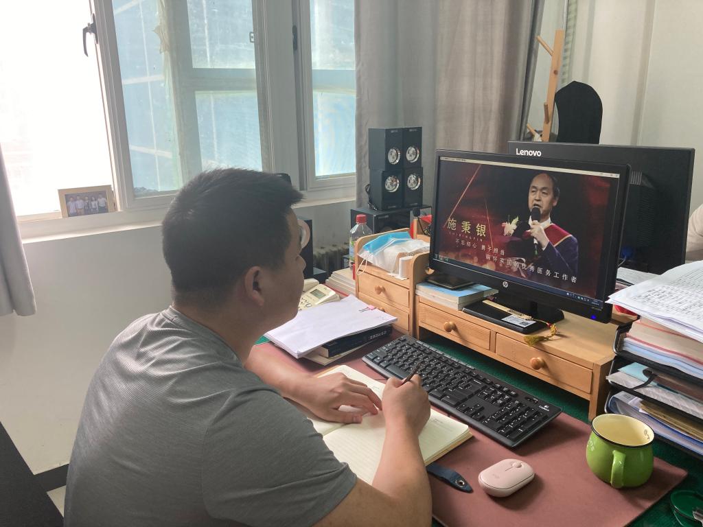 支部宣传委员金磊认为:“三秦楷模”在平凡的岗位上无私奉献着自我,为国家和人民做着极不平凡的事。疫情严峻时刻,施秉银院长率队驰援武汉,连续长时间奋战坚守在抗疫一线,表现出了极高的医术水平和忘我的敬业精神,他用实际行动向我们阐释了爱国奋斗和无私奉献的精神内涵,他是疫情期间最美的“逆行者”。